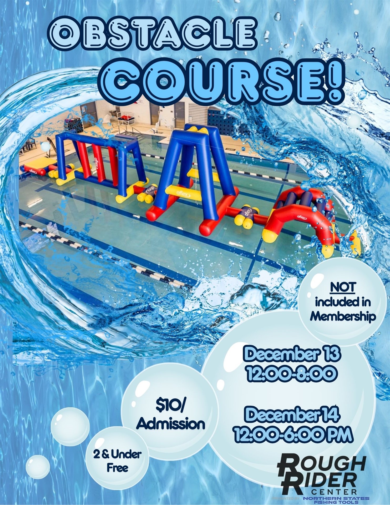 Get ready for an action-packed weekend at the Rough Rider Center Aquatics! Our Inflatable Obstacle Course is back and bigger than ever. Climb, slide, and splash your way through a fun and challenging course thatโs perfect for all ages.