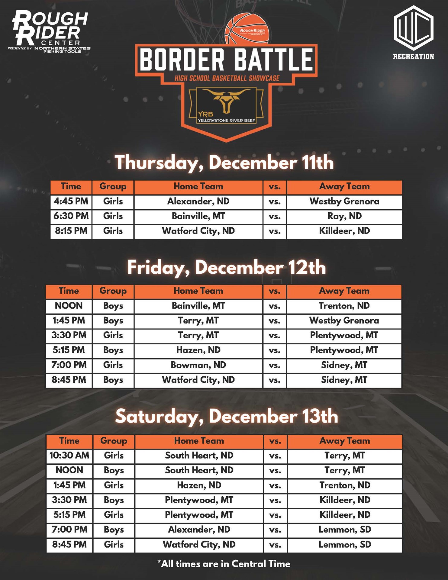 Join us on December 11-13 for an exciting weekend of high school basketball as teams from Montana, North Dakota, and South Dakota hit the court! Witness incredible talent, fierce competition, and the next generation of basketball stars. Don’t miss the action and the electric atmosphere of this regional showdown. Bring your team spirit and cheer on these amazing athletes!